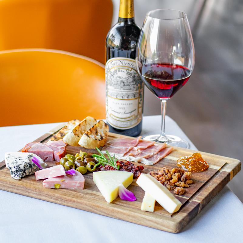 Chef’s selection of meats and cheeses served with walnuts, raisins, olives, fig jam, and crostinis.