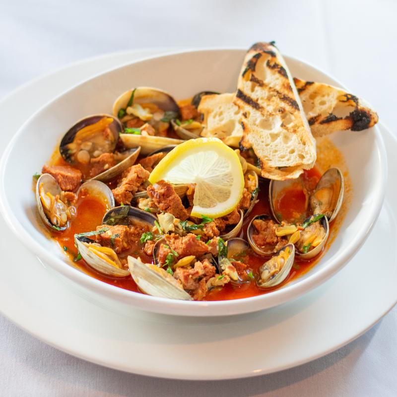 Our signature. Manila clams sautéed with garlic, chorizo, butter, fresh lemon juice, chili flakes, and a white wine reduction.